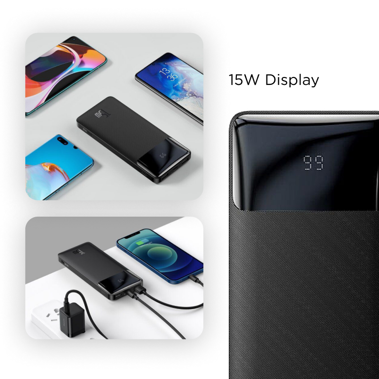 Корпус Baseus 10000mAh виготовлений із міцного пластику та має матову поверхню. Тому акумулятор не вислизне з рук, навіть якщо заряджання відбувається на ходу. Пристрій важить всього 252 г і легко поміститься в сумці, рюкзаку або навіть просто в кишені. А цифровий LED-дисплей підкаже поточний рівень заряду вашого повербанка.