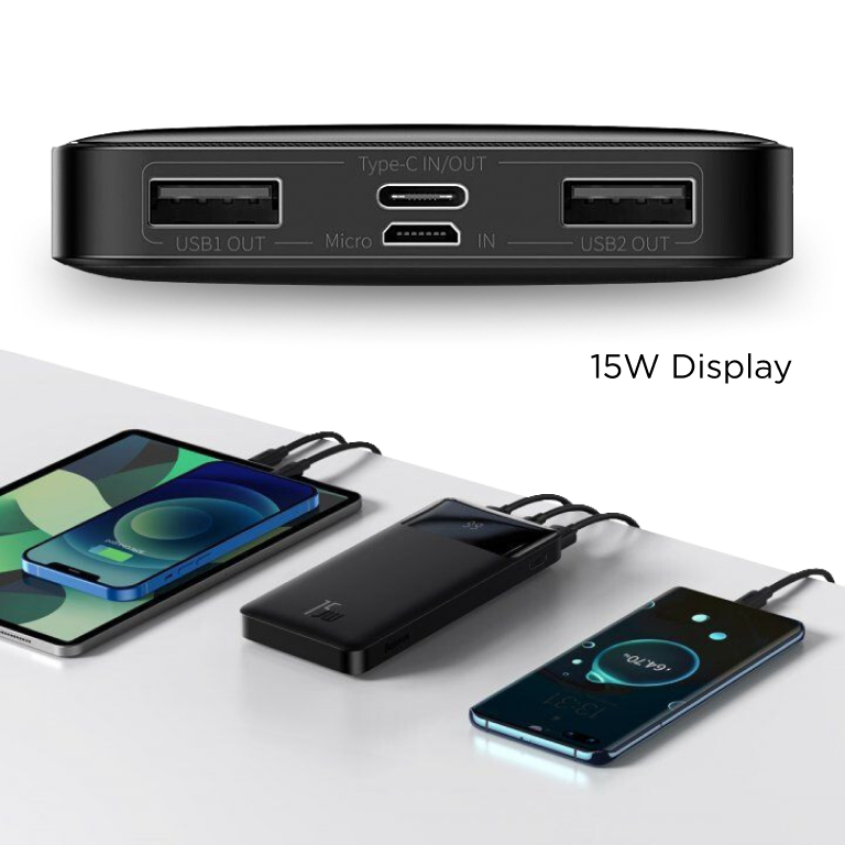 Повербанк Baseus 10000mAh має 4 порти на всі випадки життя (2xUSB, USB Type-C, micro USB). Причому порт USB Type-C використовується як для заряджання сумісних пристроїв, так і для заряджання самого акумулятора. Ви зможете заряджати одночасно до трьох пристроїв за допомогою роз'ємів 2xUSB та USB Type-C, тоді як роз'єми USB Type-C та micro USB допоможуть підзарядити повербанк.