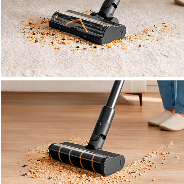 У вас вдома різне покриття? Xiaomi Dreame R10 PRO підлаштується під кожне. Пилосос обладнаний мультифункційною основною щіткою, яка збирає сміття з посиленою ефективністю. Її плавальна головка адаптується під будь-яку поверхню та наближається до плінтусів на відстань 7 мм. Завдяки такій маневровості, вона краще збирає сміття в кутах, у щілинах та на інших важкодоступних ділянках підлоги. V-подібна форма щетинок гарантує захоплення навіть дуже дрібного пилу, бруду, шерсті та волосся. А спеціальні зубці розплутують волосся прямо під час прибирання, щоб легко перемістити його в мішок.