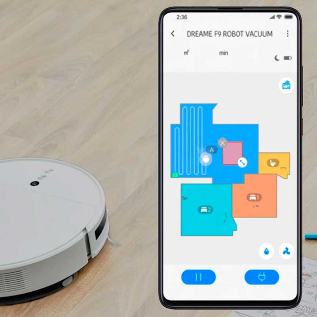 Стежити за роботою Dreame F9 можна через фірмовий застосунок Mi Home. Там само можна налаштувати прибирання під себе: визначити графік виїздів, встановити заборонені зони або віртуальні стіни, вибрати режим для сухого прибирання і для вологого. Якщо у вас встановлена система розумного будинку від Xiaomi, то робота Dreame можна в неї органічно вбудувати.