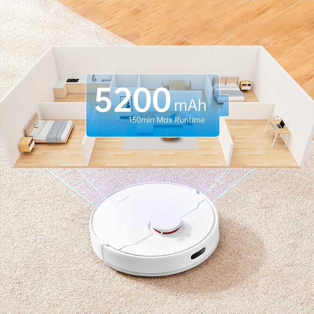Навіть якщо у вас великий двоповерховий будинок, який вимагає ретельного очищення, Dreame D10 Plus впорається з поставленим завданням без перерв на підзарядку. Адже пилосос оснащений батареєю на 5200 мА*год, що дозволяє проводити генеральне збирання площі до 270 м.кв.