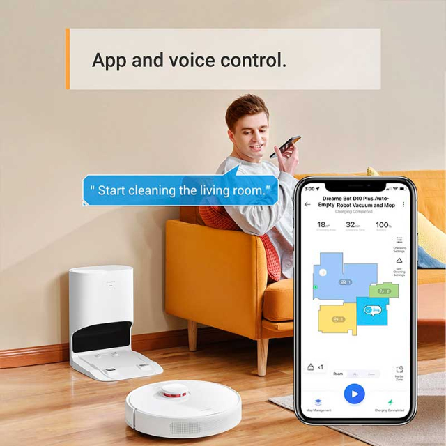 Щоб почати прибирання вдома або зупинити процес у будь-який момент, достатньо сказати лише одну фразу? Саме так! Синхронізація з Google Home та Alexa відкриває можливості керувати роботом дистанційно завдяки спілкуванню з голосовим помічником. Просто скажіть "Alexa, попроси DreameBot прибрати". І поки ви відпочиваєте на дивані чи дивіться серіал, помічник непомітно вдихне магію чистоти у кожний куточок вашої квартири.