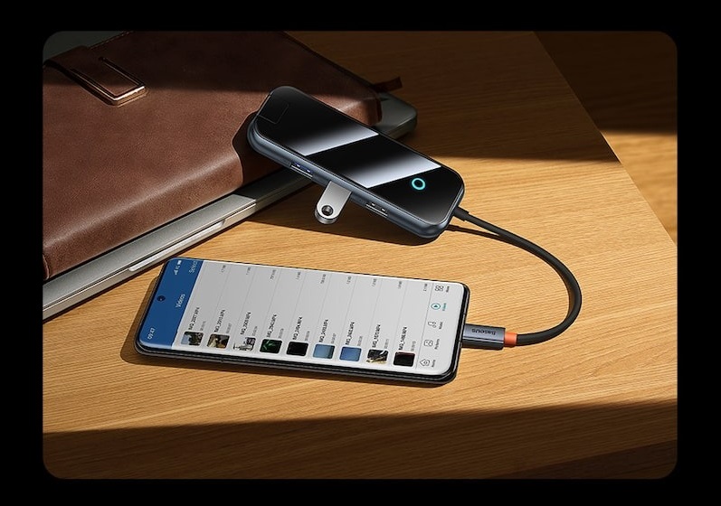 AcmeJoy 8-Port Type-C Hub Adapter не просто дивує яскравим дизайном, він також вражає якістю свого виготовлення. Цей адаптер не тільки має естетичний вигляд, але й дуже функціональний. З цим адаптером вам не потрібно більше турбуватися про обмежену кількість під'єднань — будь-яке додаткове обладнання, включно з передаванням даних, легко під'єднати. Світлодіодна підсвітка нагорі навіть інформує вас про стан пристрою, забезпечуючи зручність у використанні.