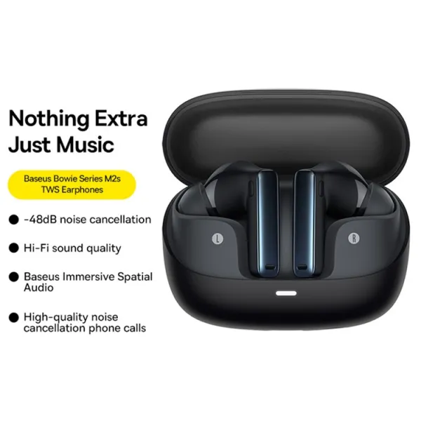 Блютуз наушники Baseus Bowie M2s TWS вирізняються чудовим звучанням — вони пропонують об'ємний звук, звучання якого ви можете налаштувати, зокрема, у режимі прослуховування музики або в режимі гри. Крім того, за допомогою еквалайзера ви можете змінювати звучання музики залежно від її жанру — джаз, класичний рок, класична музика — ось лише кілька режимів, між якими ви можете вибирати.